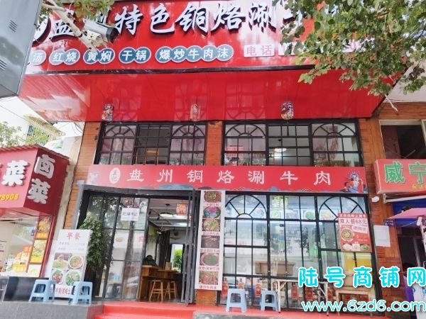 店铺经营知名盘县铜锅牛肉火锅,面积为120平,上下两层,楼上有两个包房和卡座3张桌,厨房在一楼,背面是成熟小区(新星小区,蓝钻花园,尖山小区等)门口停车方便,门头宽7.5米左右,租金为5600每月,周边只有一家铜锅牛肉馆,整店均为新装修,设备齐全,接手可直接营业。不会可教技术。老板在盘县还有其他店铺经营急需转出,诚心要价格可谈。